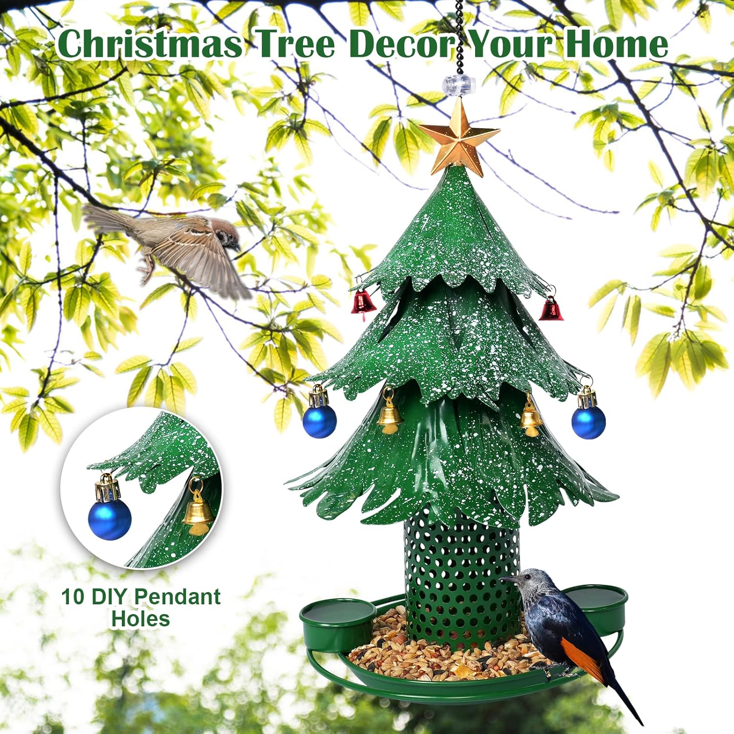 - 【DIY dress up Christmas bird feeder】: There are 10 holes reserved on the leaves of the Christmas tree bird feeder for you to DIY various christmas decor, our supply 4 pairs of christmas bell are equipped for you with decoration. It is suitable for adding a festive atmosphere to various festivals such as Christmas and Thanksgiving.Not only can you feed the birds,but also beautiful decoration for your garden.