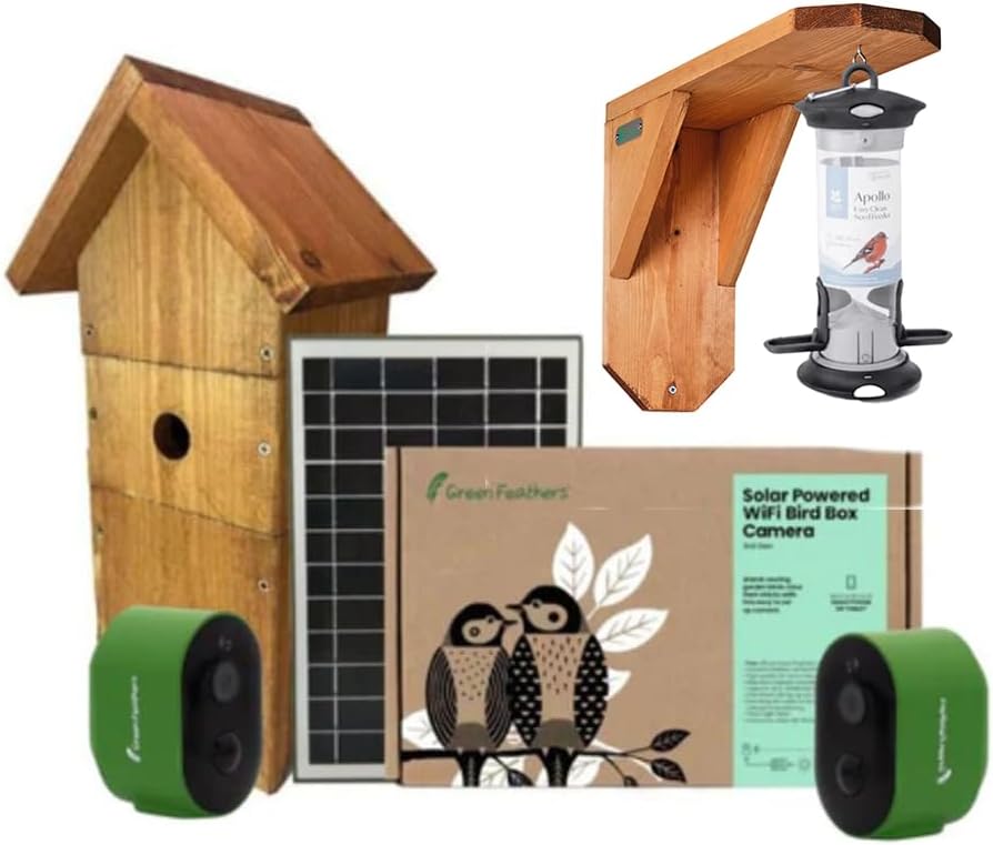 Green Feathers Solar Bird Box and Bird Feeder 2 Camera Garden Kit
