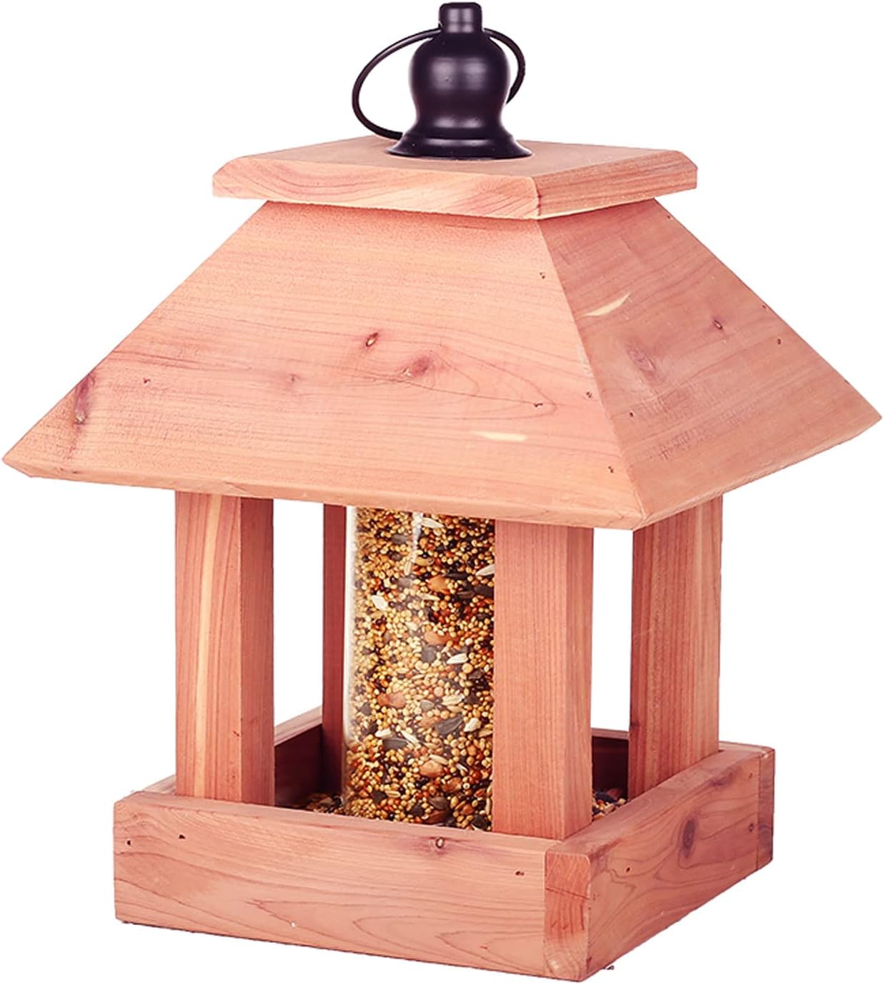- The traditional design can invite more feathered birds into garden, adding a bright color to the yard and adding more to the garden life. It is the great choice as a gift. Metal bird feeders for outdoors can also attract children s attention, thus bringing more fun to family and children.