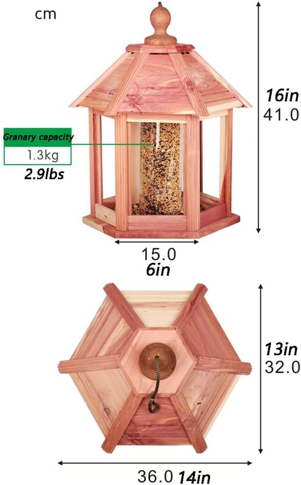 The hexagonal pavilion top cover is designed to be windproof and rainproof, ensuring your bird food remains protected against the elements.