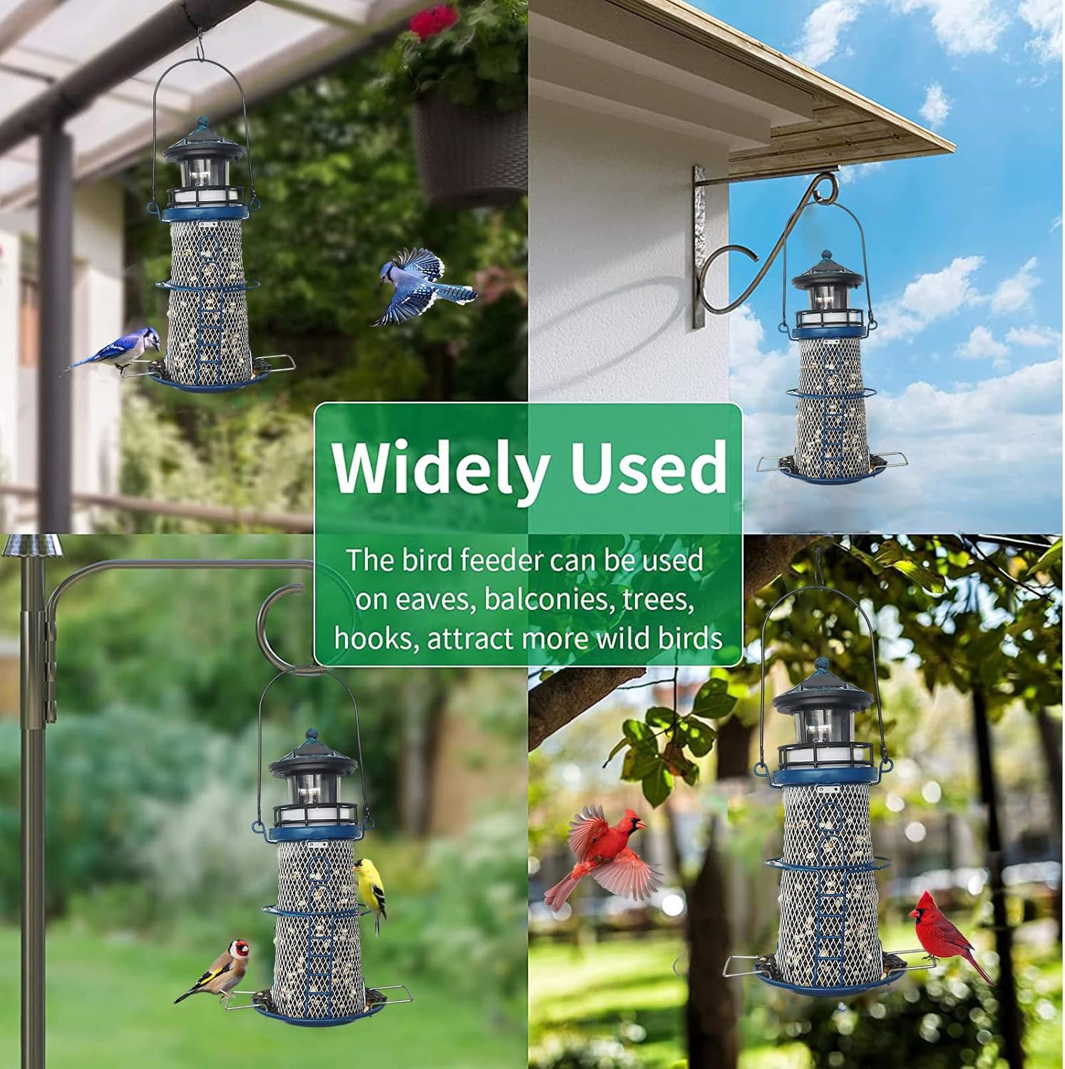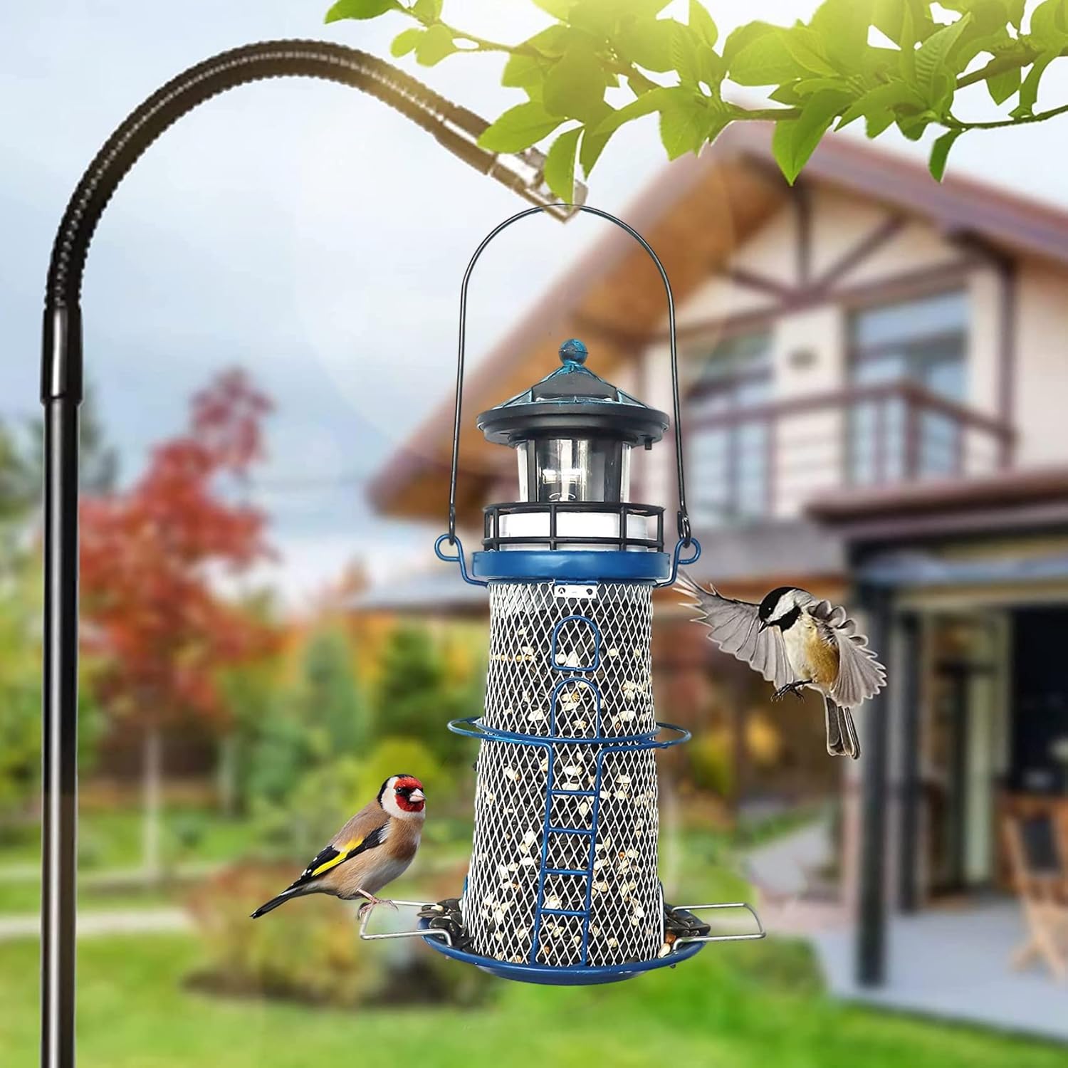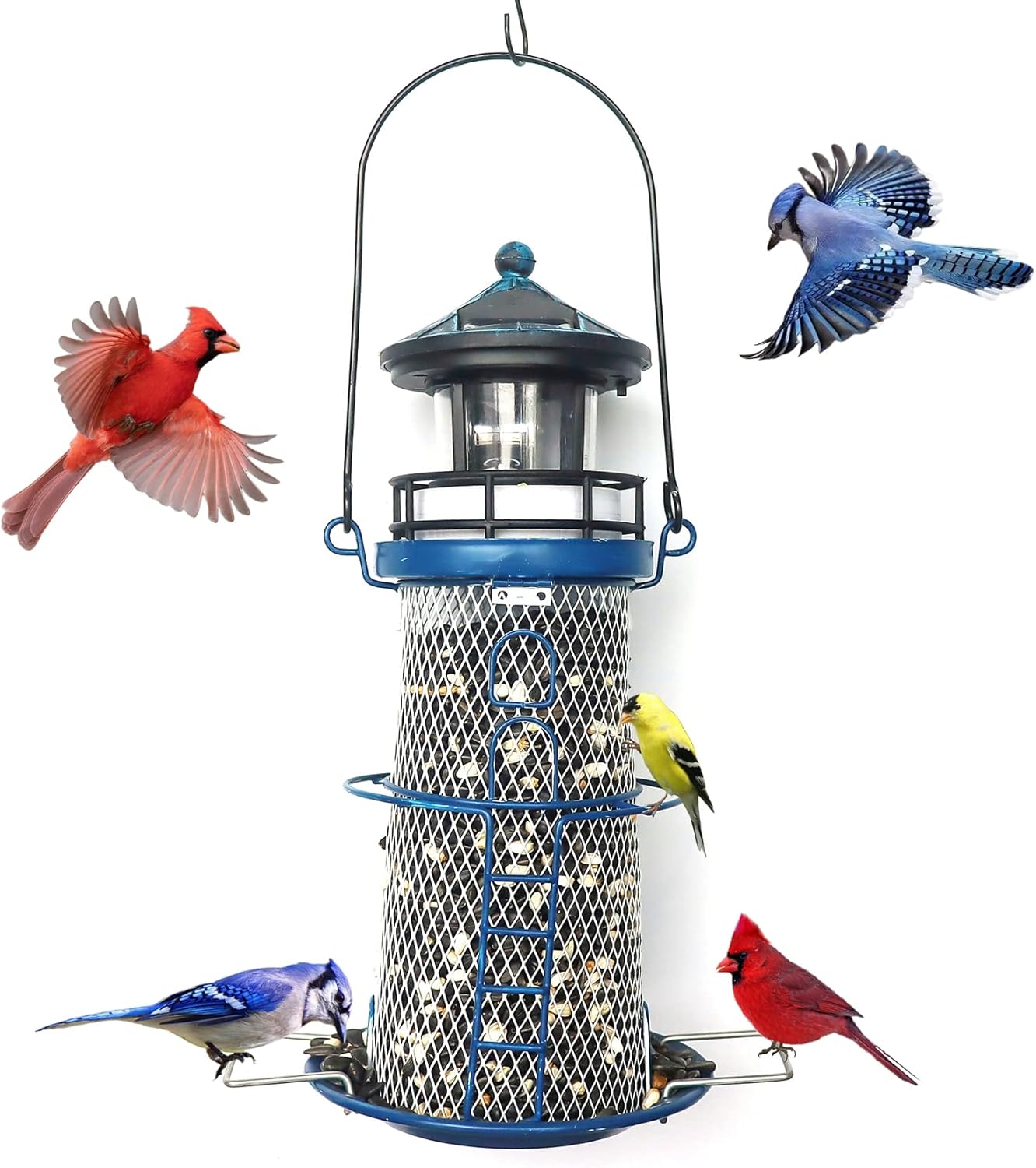 - 【Solar Lighthouse Bird Feeder】 The hanging nautical style mesh lighthouse bird feeders sure to capture the attention of birds.lighthouse surface is delicately welded with small window, door, small ladder ,metal ring and round tray for birds inhabit and enjoy seed .